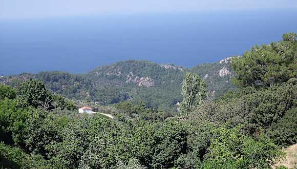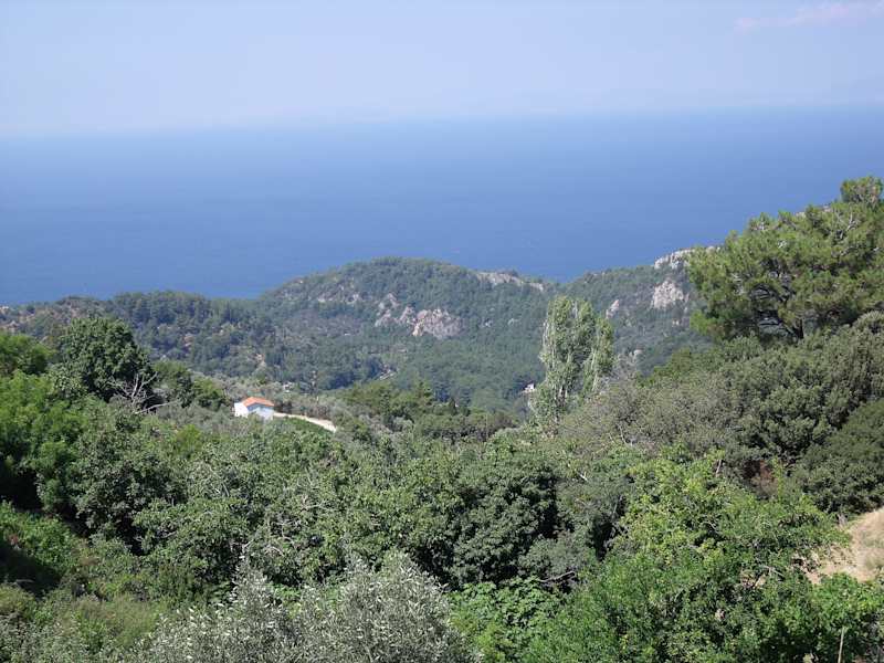 Kleines Bergdorf mit wunderschöner Aussicht über Samos