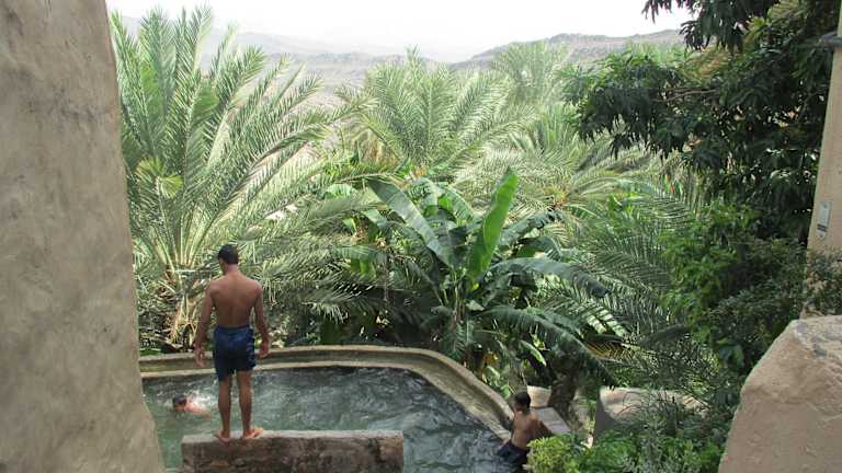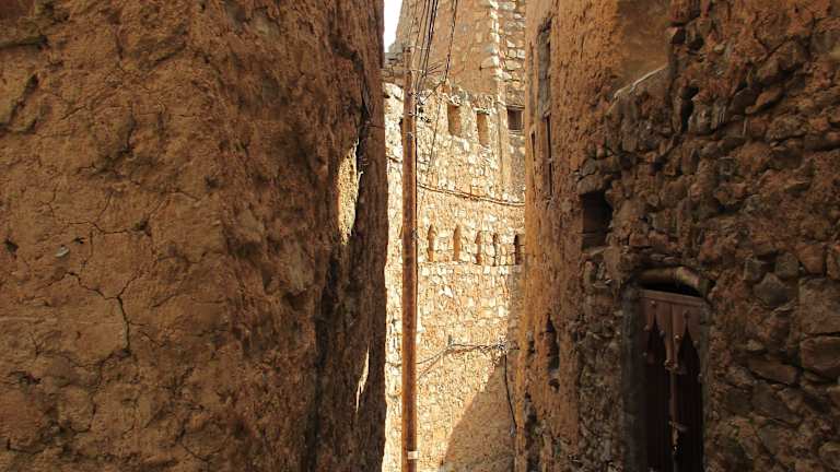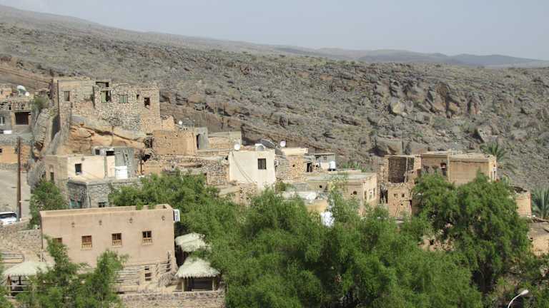 Dieses malerische Dorf liegt ein paar km nördlich von Al-Hamra. Die Häuser sind aus Naturstein gebaut und sehr authentisch. Hier sollte man beim Fotografieren etwas dezenter sein, die Häuser sind noch bewohnt. Das Auto läßt man am Ortseingang und erkundigt das Dorf mit seinen schmalen Gassen und die terrassenförmigen Palmen-Gärten zu Fuß. Die kunstvoll gebauten Wasser-Kanälle sind ein Highlight!