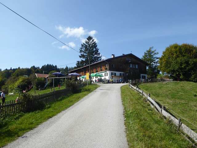 Während unserer Wanderung um den Taubenberg, machten wir auch eine Mittagspause im Berggasthof Taubenberg. Der Berggasthof Taubenberg ist ein beliebtes Ausflugsziel für Wanderer und Mountainbiker. Der Gasthof ist allerdings auch mit dem Auto erreichbar. Die Corona-Bestimmungen konnte man am Eingang zum Berggasthof lesen. Wie wir feststellten, waren noch einige Plätze bei der überdachten Sonnenterrasse frei. Wenn man im Garten sitzt ist Selbstbedienung angesagt. Die Speise- und Getränkekarte befindet sich an der Seitenwand des Ausgabeschalters. Zum Essen gibt es einfache warme Gerichte, wie z.B. Fleischpflanzerl und Kasspatzen. Wir holten uns einen hausgebackenen Leberkäse mit Kartoffelsalat (8,50 Euro) und eine Kürbiscremesuppe (4,50Euro), als Getränk 1 Radler (0,5 l) 3,50 Euro und 1 Weißbier 3,90 Euro. Als Nachspeise holte ich mir 1 Stück Torte (3,40 Euro) und 1 Haferl Kaffee (3,80 Euro). Die Preise für Speisen und Getränke fand ich etwas hoch, was jedoch für einen Berggasthof eher normal ist. Bei schönem Wetter hat man von der Sonnenterrasse einen sehr schönen Panoramablick über die Oberbayerischen Berge. Die Rückgabe des Geschirrs erfolgte bei einem besonderen Schalter. Zum Berggasthof gehört auch ein großer abwechslungsreicher Kinderspielplatz.