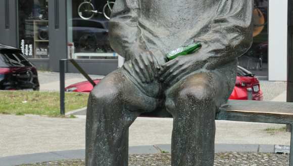 Überlebensgroß sitzt Bertolt Brecht auf einer Bank auf dem Bertolt-Brecht-Platz am Schiffbauerdamm. Das Denkmal und der Platz befinden sich vor dem Theater am Schiffbauerdamm, in dem das Berliner Ensemble seit 1954 seine Spielstätte hat. Sowohl mit dem Platz, als auch mit dem Denkmal ehrte die DDR den Dramatiker Bertolt Brecht, der auch Theaterleiter des Berliner Ensembles war. Wenn Sie hier in der Gegend sind, so schauen Sie doch auch einmal bei Bertolt Brecht am Bertolt-Brecht-Platz vorbei. Von Bertolt Brecht (geboren 1898, gestorben 1956) stammen Werke (bzw. die Texte) wie z.B. Die Dreigroschenoper (Erscheinungsjahr und Uraufführung 1928), Mutter Courage und ihre Kinder (Erscheinungsjahr 1941, Uraufführung 1941) oder auch Die heilige Johanna der Schlachthöfe (Erscheinungsjahr 1931, Uraufführung 1959). Von Brecht stammen auch die Texte zu diversen bekannten Liedern, wie z.B. Die Moritat von Mackie Messer (Und der Haifisch, der hat Zähne), Die Seeräuber-Jenny, Der Kanonensong oder Der Salomon-Song (alle vier aus der Dreigroschenoper), sowie Alabama Song (Moon of Alabama), Einheitsfrontlied („Und weil der Mensch ein Mensch ist …“) , Die Legende vom toten Soldaten und viele andere.