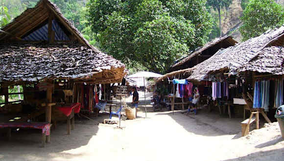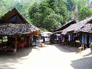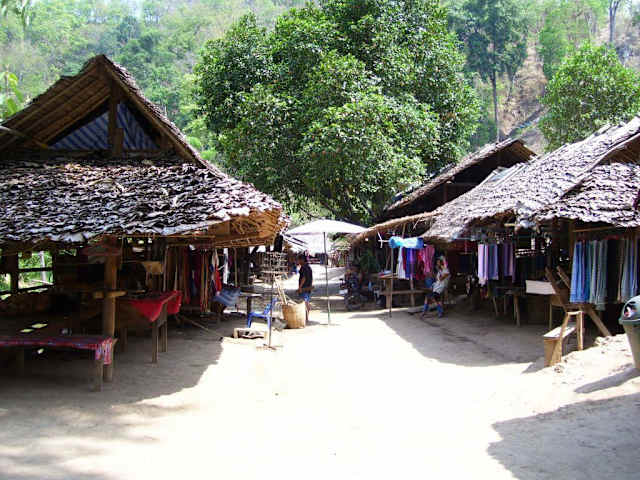Das Dorf der Langhalsfrauen ist leicht in einer fahrzeit von ca 30 Minuten von Mae Hong Son aus zu erreichen.Es geht durch eine schöne Berglandschaft und Teakholzwälder,ausserdem durchfährt man einige Flüsse die zu der Zeit meines besuches wenig Wasser führten.Bei ankunft im Dorf musste man 300 Baht eintritt zahlen was ich schon als relativ viel empfand.Aber der Preis hat sich auf jeden fall gelohnt. In dem Dorf waren wir zu der Zeit die einzigsten Touristen was daran lag das wir individuell angereist sind. Im Dorf liefen dann 6 Frauen mit den vielen Ringen um den Hals herum die obwohl sie sich wie im Zoo vorkommen mussten sehr freundlich waren.Man konnte auch viele Souveniers erwerben-Stoffe,Puppen Halsringe,Holzschnitzereien usw.Nach etwas über 2 Stunden haben wir uns dann wieder auf den Rückweg gemacht wieder mit einer Erfahrung reicher.