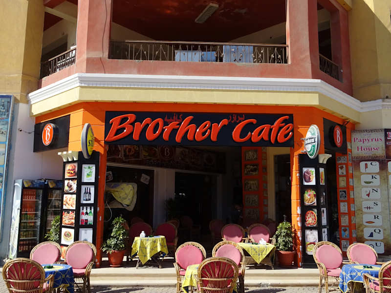 Café "Big Brother": in 5 Minuten Gehdistanz vom Hotel Steigenberger DAU al-Beach. wenn man mal etwas anderes sehen will als Hotelgäste... Shisha rauchen / Kafi trinken / Bier trinken / Cocktail schlürfen. Gemischte Kundschaft: einheimische Ladenbesitzer. Touristen. Alt und jung. Mit Toiletten für Männer und Frauen (separat). Kleine Küche. Preise sehr moderat: Shisha und Cola kosten zusammen 50 EG £ (2.50 Euro). Man kann stundenlang den promenierenden Menschen zusehen. Lustiger Chef; immer zu einem Spass aufgelegt und auch mal das Tanzbein schwingend.