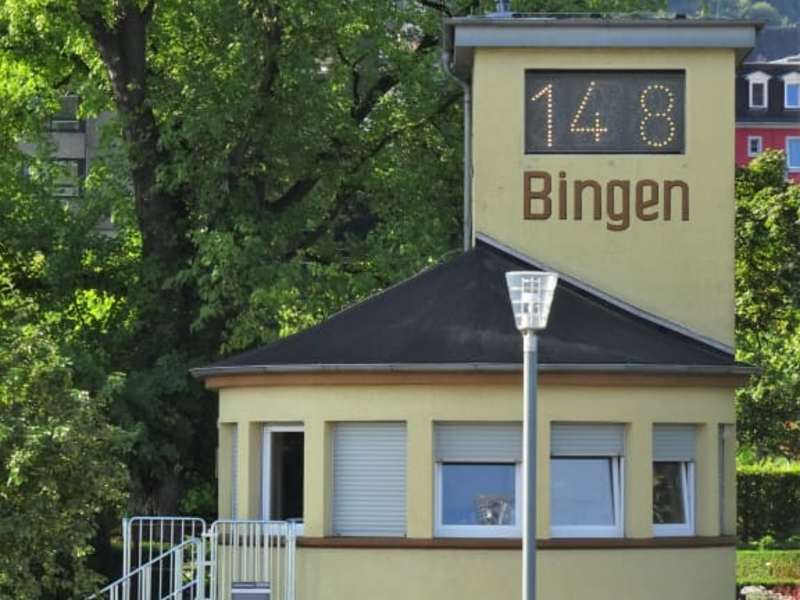 Bereits seit Jahrhunderten wird der Wasserstand des Rheins an vielen Orten regelmäßig gemessen, um jederzeit eine sichere Schifffahrt zu garantieren - der „Binger Pegel“ übernahm diese Aufgabe im Jahr 1901. Der Turm mit seinem Zifferblatt wurde im Krieg durch Bomben zerstört und erst im Jahr 1951 ging der heutige Pegel in Betrieb. Seinen eckigen Turm ergänzte man um einen runden Vorbau, in dem ein „Strommeister“ damals seinen Dienst versah. Inzwischen arbeitet der Binger Pegel ohne „Besatzung“ und zeigt zur Wasserseite den aktuellen Wert in großen Digitalzahlen an, während seine Messungen zusätzlich an den Hochwassermeldedienst übertragen werden, dessen Internetpräsenz diese samt Prognose veröffentlicht. Doch nicht allein die technische Seite des Bauwerks, sondern insbesondere die historischen Hochwassermarken an der Hauswand haben mich beeindruckt – Erinnerungen an zerstörerische Fluten, die damals ganze Altstädte überschwemmten. Der Binger Pegel gehört zu den sieben wichtigsten Messpunkten am Mittelrhein und sein Besuch lässt sich übrigens bestens mit einem Spaziergang durch die historische Hindenburganlage und ihren hübschen Rosengarten verbinden.