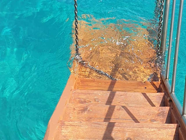 1x pro Woche chartert Hotelbesitzer Babis (Hotel Apollon und Apollon Xenonas) ein traditionelles Holzsschiff exclusiv für 25 seiner Gäste (dieses Ausflugsschiff bietet Platz für 220 Passagiere). Ausgehend vom kleinen Hafen in Sarti passiert das Schiff Traumbuchten entlang der Ostküste Sithonias. Bei unserer Tour konnten wir Delfine sichten und wurden von Möwen begleitet. Der Weg ist das Ziel – es gibt Badestopps an zwei besonders malerischen Buchten – der Krebsbucht und der Paradiesbucht. Ziel ist die Rodia Bucht (nicht im Landweg erreichbar), dort hat das Schiff für gut 3 Stunden angelegt. Ein von Felsen begrenzter Bilderbuchstrand (nur über den Seeweg erreichbar) - feiner goldfarbener Kieselsand, kristallklares, türkis schimmerndes Wasser – einfach traumschön. Das Mittagessen wurde vom Schiff an den Strand gebracht: Souvlaki, gegrilltes Gemüse, Sardinen, Brot. Zum Gemüseschnipseln für den bunten Salat wurden wir eingeladen und Babis würzte mit seiner Spezial Bio-Olivenöl-Kräutermischung. Allerlei Getränke standen bereit, inclusive Wein und Ouzo. Siesta unter den mitgebrachten Sonnenschirmen, Schwimmen und Planschen, Holz sammeln für die Feuerschale – ein kurzweiliger Aufenthalt. Insgesamt ein einzigartiger und unbeschreiblich schöner Ausflug, den man in dieser Individualität (und mit viel Platz am Schiff) nur als Hotelgast von Babis erleben kann - Efcharisto, lieber Babis.