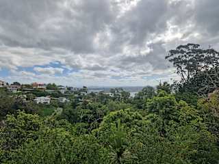 Der Bluff Hill ist die einzige größere Erhebung in Napier. Dort oben gibt es ein Aussichtsbereich. Man dort mit den Auto hochfahren. Wir laufen aber immer vom Centenial Garden den Fußweg nach oben. Von der Coote Rd in die Priestly Rd zur Priestly Terrace und die Lighthouse Rd Richtung osten folgen. Dort kommt gleich der Eingang zum Sturm's Gully Reserve. Dort gibt es dann direkt die Treppe hoch zum Lookout. Den besten Ausblick hat man nach Westen. Wir setzen uns gerne auf die eine Bank (nach Westen) und genießen die Aussicht.
