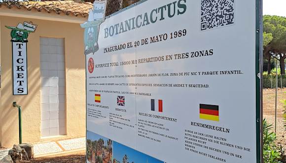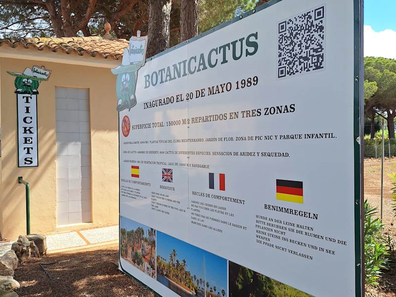 Während unseres Urlaubs im Oktober 2022 haben wir den Botanicactus besucht. Caretera Ses Salines – Santany, Km1. Der Eintritt kostet € 10,50 – Kinder € 4,50 Öffnungszeiten Montag – Sonntag 10:30 bis 16:30 – besser vor Besuch anrufen: +34 971 64 94 94 Am Eingang im Kassenhäuschen gibt es Getränke zu kaufen. Nebenan stehen einige Stühle und Tische. Es ist eine Toilette vorhanden. Das Gelände umfasst 150 000qm und besitzt einen künstlichen See von 10 000qm der mit einem Boot befahren werden kann. Es gibt die verschiedensten Pflanzen, Oliven-, Orchideen-, Granatapfel-, Pinien-, Zypressen-, Mandel-, Gummi- und Johannisbrotbäume. Über 10 000 Kakteen und Sukkulenten. Der Park wurde im Mai 1989 eröffnet. Vor ca. 7 Jahren habe ich den Park zuletzt besucht. Der Park sieht, genau wie damals, teilweise sehr ungepflegt aus. Die Namensschilder für die Pflanzen sind nicht mehr überall vorhanden. Die großen Kakteen sind wirklich sehr sehenswert. Viele hatten schöne große Blüten. Der große Hang mit den Cycas Revoluta, Sago Palme, ist in einem bedauernswerten Zustand. Ein Drittel bis die Hälfte der Pflanzen haben keine Blätter mehr, sie liegen auf der Erde. Einige Pflanzen haben wieder ausgetrieben. Im Mallorquinischen Teil sieht man einheimische Bäume und Pflanzen und es ist schattig. Es gibt ein kleines Gehege mit bedauernswerten Pfauen, Fasanen und anderem Hühnergetier. Das sollte unbedingt renoviert oder aufgegeben werden. Der See ist durch die Hitze fast ausgetrocknet und eine Bootsfahrt ist nicht möglich. Die Tische und Bänke der Picknickplätze sind rostig und laden nicht zum Hinsetzen ein. In der weiteren Anlage fehlen Bänke. Es tut mir leid keine bessere Bewertung abgeben zu können. Der Park bietet nichts für Kinder.