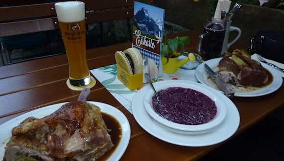 Obwohl wir schon seit vielen Jahren nach Garmisch-Partenkirchen reisen, hatten wir dieses urige und traditionsreiche Lokal, in dem auch Einheimische verkehren, bislang zunächst nicht aufgesucht. Wie sich zeigte, war dies ein Fehler, denn man speist dort hervorragend und wird aufmerksam und freundlich bedient. Bei entsprechendem Wetter genießt man den Aufenthalt auf der Terrasse oder sonst im sehr gemütlichen Gastraum. Nachdem wir es für uns entdeckt hatten, sind wir gerne mehrmals dort eingekehrt.
