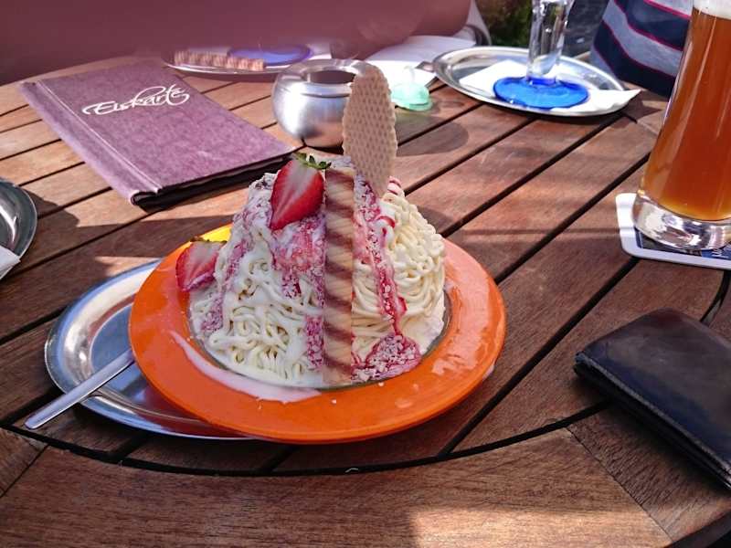 Wir waren dieses Wochenende im Chez Leon um einen Kaffee zu trinken, bzw. ein Eis zu essen. Auf der Terrasse waren nur noch wenige Plätze frei, ob dies nun an den wahrscheinlich letzten warmen Tagen im Jahr lag oder aber weil das Restaurant so gut ist, konnten wir davor noch nicht sagen. Kaum Platz genommen kam auch schon die Bedienung und hat uns die Speisekarten gebracht. Da wir nur ein Eis essen wollten bekamen wir die Eiskarte in welcher es wirklich mehr als genug Auswahl gibt. Da ich nicht sonderlich experimentierfreudig bin was Eis angeht habe ich den Klassiker, ein Spaghettieis und natürlich in groß, bestellt. Als es dann kam staunte ich nicht schlecht. Das Spaghettieis war wirklich groß, hat hervorragend geschmeckt und das zu einem sehr fairen Preis von unter 7 Euro. Auch die Eisbecher der anderen sahen alle sehr gut aus und alle waren zufrieden. Einziges Manko, das Restaurant liegt direkt neben der Einfahrt zum Parkhaus, sodass man ständig wartende Autos im Rücken hat, was aber zu verkraften ist. Zum Restaurant selber und dessen Leistung kann ich wenig sagen, da wir die warme Küche nicht probiert haben. Pro: - leckeres Eis - schneller Service - Preis/Leistung Neutral: - Viel Verkehr in terrassennähe
