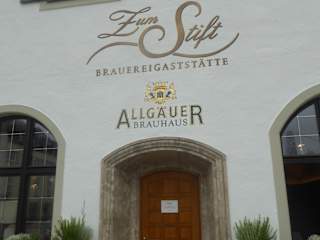 Nach dem Besuch der Residenz machten wir eine Mittagspause in der Brauereigaststätte Zum Stift. Die Gaststätte befindet sich am Stiftsplatz 1 im Zentrum von Kempten neben der der St. Lorenz Kirche. Beim Eingang zur Gaststätte wurden wir bereits von einer Bedienung höflich gefragt, ob wir einen Platz reserviert haben. Wir verneinten. Uns wurde dann von der Servicekraft ein Tisch zugewiesen. Sie brachte uns dann auch sofort die Speisekarte. Das Angebot auf der Speisekarte war vollkommen in Ordnung. Wir haben uns für Allgäuer Kässpatzen (14,50 Euro) und für Büffelmozarella (13,50 Euro) entschieden. Zum Essen tranken wir je einen Spezi. Das Essen und die Getränke wurden uns in kurzer Zeit gebracht. Das Essen schmeckte uns sehr gut und auch die Portionen waren vollkommen in Ordnung. Schön und gemütlich eingerichtet waren auch die Gaststuben. Sehr interessant fand ich auch die Geschichte der Brauereigaststätte Zum Stift. Das Wirtshaus wurde im Jahr 1556 erstmals urkundlich erwähnt. Die zentrale Lage machte das Gasthaus zu einem Treffpunkt für Pilger und Besucher der fürstäbtlichen Ämter. Im Jahr 1823 erwarb der Braumeister Martin Leichtle die Brauerei von der Kurfürstin Maria-Leopoldine von Bayern. Martin Leichtle übergab seine Brauerei an seinen Sohn Johann Leichtle. Im Keller befand sich eine Wandtafel mit folgenden Text: Joh.Leichtle erbaute diesen Keller mit den darauf stehenden Laden anno 1873. An dem Tage an welchem das Gewölbe geschlossen wurde kehrte das 1.Jägerbataillon aus dem Siegreichen Feldzuge gegen die Franzosen heim d. 27.Juli 1873. Im Jahr 1918 wurde hier in der Gaststätte für einige Jahre auch eine Hockersteuer erhoben, je länger jemand sitzen blieb, desto teurer wurde es. Die Bedienung in der Gastwirtschaft war freundlich und sehr aufmerksam trotz der vielen Besucher. Wir können die Gaststätte Zum Stift weiterempfehlen. Nebenbei erwähnt, zum Wirtshaus gehört auch ein Biergarten.