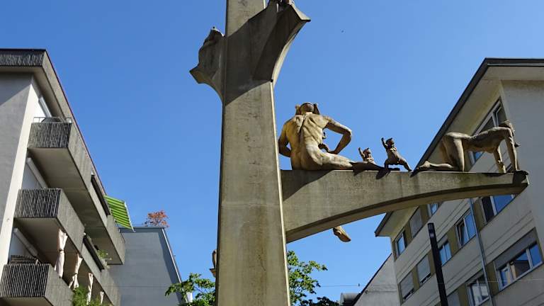 Eine Stele aus Stahl des Künstlers Erich Hauser war Start unseres Stadtrundganges. Leider ohne Wasser und das Becken mit einigem Müll - nicht wirklich ansprechend.