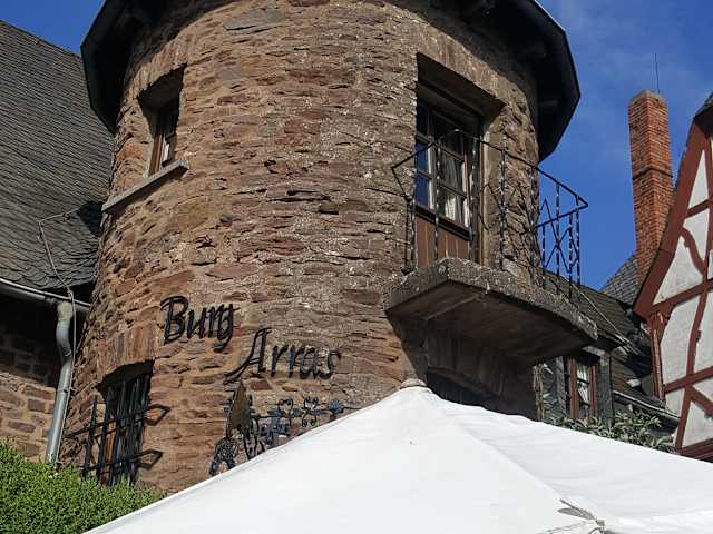 In Sichtweite des Städtchens Alf an der Mosel erhebt sich die Burg Arras. Ihr Name wurde aus den lateinischen „arrha“ = befestigter Berg abgeleitet. Die im Jahr 950 fertig gestellte Burg ist die älteste Burganlage der Mosel und des Mittelrheingebiets. Nach Zerstörung der Burg durch die Franzosen am Ende des Pfälzischen Erbfolgekriegs verfiel sie und wurde als Steinbruch genutzt. Nur der bis zu 4 Meter dicke Turm widerstand allen Zerstörungskräften. Um 1900 begann der Wiederaufbau der Burg. Heute beinhaltet sie ein kleines Hotel, ein Laserinstitut, ein Museum und eine Gedenkstätte des ehemaligen Bundespräsidenten Dr. Heinrich Lübke (1959 bis 1969), einem Angehörigen der heutigen Eigentümer. Heute befindet sich die Burg im Privatbesitz. Sie kann mit Ausnahme des Hotels ganzjährig besichtigt werden. Dazu gehört insbesondere der Bergfried mit seiner Burgkapelle, der Rittersaal mit einer kleinen Waffensammlung und alten Grafiken über die Mosel, die Gedenkstätte des ehemaligen Bundespräsidenten und in einem Nebengebäude das Burgverlies und die Folterkammer. Bei schönem Wetter bietet sich ein Besuch der Freiterrasse des Restaurants an. Besucherparkplätze gibt es ca. 500 Meter unterhalb der Burg. Behinderte können jedoch einige der wenigen, sonst Kunden des Laserinstituts vorbehaltenen Parkplätze am Eingang nutzen.