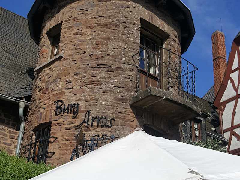 Adresse: Hotel Burg Arras, 56859 Alf/Mosel Telefon: (06542) 22 75, Fax: - 25 95 web: www.arras.de Anfahrt: über Alf, Koblenzer Straße, B49 GPS-Position: N 50° 03’10“, E 07° 06’20“. Öffnungszeiten: Mo - Fr: 10.00 bis 18.00 Uhr, Sa - So 9.00 bis 18.00 UhrEintrittspreise: Erwachsene: 4,- €, Kinder (6 – 10 J.): 2,- €; Gruppen ab 15 Pers.: 3,50 €. Parkplätze: 500 m unterhalb der Burganlage.