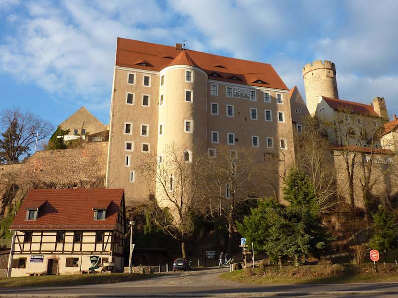 Die Burg, nicht weit von Chemnitz gelegen, soll Sachsens besterhaltene Wehranlage und Ritterburg sein. Davon zeugen besteigbarer Bergfried, Zwinger, Zinnen, Torhaus, Wehrgänge, Wohnhäuser, Turmhof und Schildmauer der Festung hoch über der Wyhra mit wunderbarem Blick auf den Ort. Es gibt noch ein aus der Anfangszeit der Burg stammendes Brunnenhaus und eine spätgotische Kapelle mit drei Flügelaltären, welche 1501/1503 in Zwickau entstanden. Verschiedene Präsentationen, teilweise wechselnde Sonderausstellungen und -führungen laden zu einer historischen Entdeckungsreise ein. Zu besichtigen sind dazu der romanische Palassaal, die Interieurräume aus Empire und Barock sowie die Sammlung von Exponaten aus 7 Jahrhunderten. Darüber hinaus bietet die Burg zudem ein ganz besonderes Ambiente für Hochzeiten.