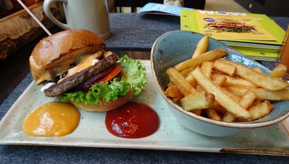 Durch die etwas abgelegenere Lage war es wie immer angenehm ruhig in der Tübinger Straße. Die Sitzmöglichkeiten im Außenbereich schienen teilweise neu - wirkten aber etwas unbequem, daher ging es in den Innenbereich. Die Polster dort wirkten teilweise schon etwas abgenutzt und auch die Kunstblumendeko war nicht mehr ganz so ansprechend. Mit dem Essen dauerte es etwas - allerdings war das Burgerpatty und die Pommes nicht mehr heiß sondern eher nur noch lauwarm, stand also wohl schon ein Weilchen. Ansonsten hat es gepasst.