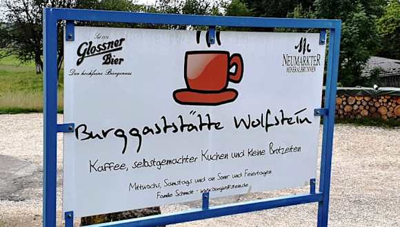Wer die Burg Wolfstein besucht den würde ich die Einkehr zur Burggaststätte Wolfstein empfehlen, barrierefrei ist es nicht da es einige Stufen nach unten geht. Eine tolle Terrasse, Sonnengeschützt ist vorhanden. Hausgemachte Kuchen und guter Kaffee werden geboten. . Adresse: Familie Schmidt Burg Wolfstein 3 92318 Neumarkt i. d. Opf. . ÖFFNUNGSZEITEN Samstag und Sonntag von 13:00 bis 18:00 Uhr Internet: www. burgwolfstein. de