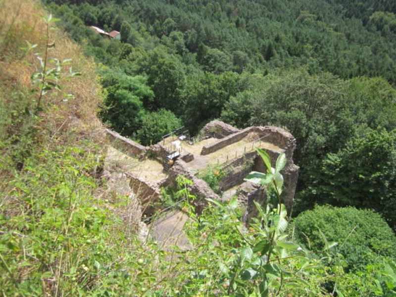 Von weitem meint man es wäre ein Felsen, aber es ist der Drachenfels, eine der schönsten Ruinen in der Pfalz. Man erreicht die Ruine kurz vor Busenberg aus Bad Bergzabern kommend, dort links zum Wiessensteiner Hof und von dort zur Drachenfelshütte. Von hier aus etwa 15 Minuten. Es ist eine sehr weitläufige Burg, die auf 2 Felsen gebaut wurde. Den zweiten Felsen kann man nur mit Kletterausrüstung erreichen, aber der erste ist gut ausgebaut. Der ehemalige Turm heißt Backenzahn uns man findet dort überall kleine Trappen und Höhlen. Super Ausblick über den Pfälzer Wald.