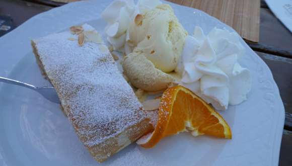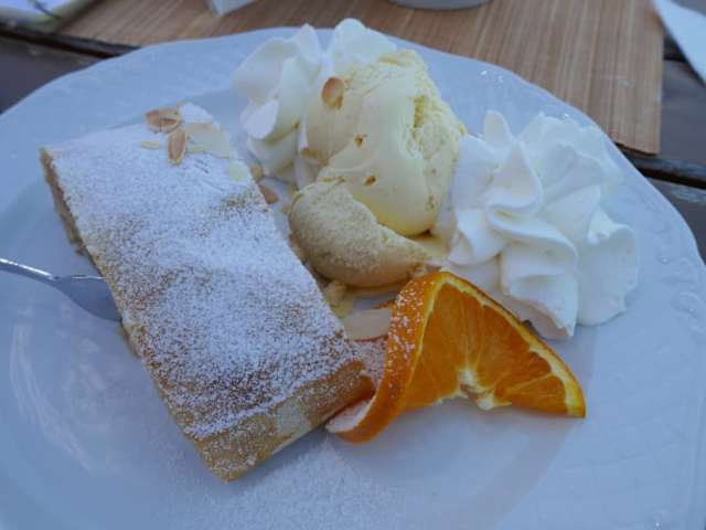 Unmittelbar über dem See liegt in der Hauptstraße 29 dieses Café auch mit Aussengastronomie. Hier hat man nicht nur einen herrlichen Blick auf den See, das Angebot an Kaffee und Kuchen, sowie an kleinen Gerichten ist mannigfaltig. Apfelstrudel mit Sahne und Eis schmeckten gut, die Kaffees, egal ob Milchkaffee oder Kaffee Hag sind nicht das was wir für "GUT " bezeichnen können. Fade ist der Kaffee, da hilft es auch nicht, wenn die Kellnerin noch etwas Kaffee nachschenkt. Um die Aussicht zu geniesssen könnte man so etwas tolerieren