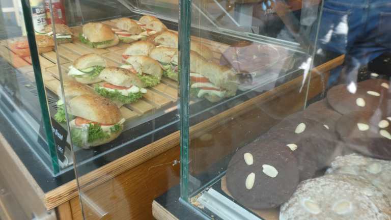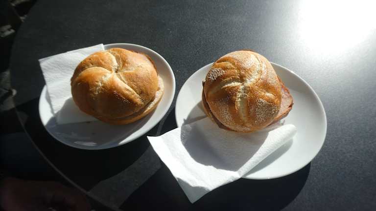 In Würzburg befindet sich am Dominikanerplatz 4 eine Niederlassung der Familienbäckerei Schiffer mit Sitzmöglichkeiten im Innenraum (und bei passendem Wetter auch im Freien vor dem Gebäude). Man bekommt hier nicht nur Bäckereierzeugnisse, sondern auch andere Speisen wie z.B. Leberkäse / Leberkäsbrötchen sowie Getränke.