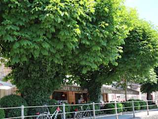 Nach einem Bummel durch Salzburgs Altstadt suchten wir im Juni 2013 bei 37 Grad eine Restauration, in der wir eine Kleinigkeit zu uns nehmen konnten. Dieses gelang uns am rechten Ufer der Salzach mit dem Cafè. Ein traumhafter Kaffeegarten mit einem fantastischen Panoramablick erwartete uns mit Schatten spendenden Bäumen. Die gut gefüllte Terrasse hatte zur Mittagszeit für uns noch ein Plätzchen frei und so genossen wir die Silhouette der Mozartstadt hinter der rauschenden Salzach. Die Festung Hohensalzburg, die Kirchtürme der Altstadt und der Mönchsberg gaben uns eine hervorragende Kulisse zu unserem Kaltgetränk und einem kleinen Imbiss. Hier schmeckte uns die hausgemachte Spezialität der Schokoladen-Trüffeltorte zu akzeptablen Preisen besonders gut. Wir wurden freundlich und flink bedient. Die Inneren Räumlichkeiten haben den typischen Charme eines österreichischen Kaffeehauses und sind dementsprechend eingerichtet. Die Toiletten liegen in der ersten Etage und sind nur über eine Treppe leider nicht barrierefrei zu erreichen.