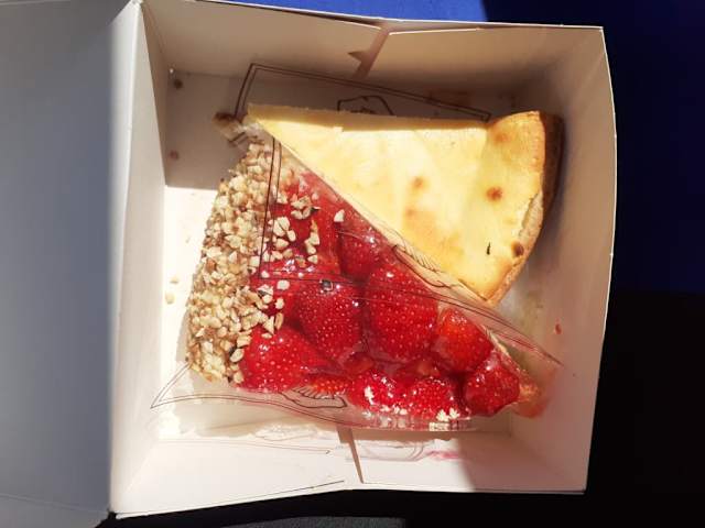 Wir waren in Wissembourg unterwegs als wir Lust auf frischen Kuchen hatten suchten wir das Cafe L'entre deux mitten in der Altstadt gelegen auf. Wir hatten ein Stück Käsekuchen für 2,60,- Euro und ein Stück Erdbeerkuchen für 3,90,- Euro, to go. Sehr leckere große Stücke. Das Team war sehr freundlich und hilfsbereit, Dankeschön! Sehr gerne empfehlen wir das Cafe L'entre deux klar weiter! Adresse: L'entre deux 27 Rue nationale 67160 Wissembourg Telefon: +33 3 88 86 43 46