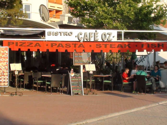 Vorne weg, daß "Bistro Cafe OZ" ist ein typisches Touristenlokal wie es vielfach hier an der Promanade Richtung Baska Voda gibt.Aber das Essen ist durchaus schmackhaft und das englisch sprechende Personal sehr freundlich.Große Auswahl an kroatischen und Internationalen Gerichten.Wir waren hier mehrfach essen ,weil auch Qualität und Preis gestimmt haben.Grillplatte für 2 für 18€,supergünstig die Jumbo-Pizza 50cm Dm. für 50 Kuna(6,70€) da wird man zu zweit von satt.Auch ein Bier vom Fass 0,5l für 10 Kuna ist für die Gegend sehr billig.Das Lokal liegt rechts vom Hafen,hinter dem "dm Drogerie Markt" am Anfang der Promenade.