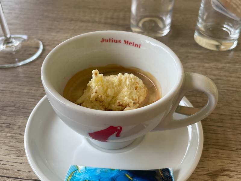 Dieses Mal bin ich in der Mittagszeit im Café Wandelhalle eingekehrt. Die Bedienung war sehr freundlich und mein Wein wurde zügig serviert. Für den kleinen Hunger gab es ein Bruschetta, und im Anschluss gab es noch einen Affogato. Man sitzt dort sehr schön mit Ausblick auf die Promenade und kann dem bunten Treiben zuschauen.