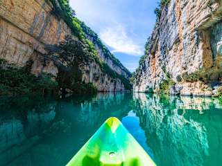 Die Schlucht des Verdon gehört ohne Frage zu den landschaftlichen Highlights der Provence: Über 700 Meter tief hat sich der Fluss Verdon durch den weichen Kalkstein gearbeitet und einen „Grand Canyon“ geschaffen, in dessen Tiefe er sich als grünes Band in vielen Kurven schlängelt. Für eine Erkundung der Verdonschlucht bietet sich das Auto an, denn die Strecke vom Eingang der Schlucht bis nach Castellane ist knapp 55 Kilometer lang. Ich empfehle zunächst den Stausee „Lac de Sainte Croix“ anzusteuern und ab dem bezaubernden Fayence-Dorf „Moustiers Sainte Marie“ dann über die D 952 weiter bis nach La Palud sur Verdon zu fahren. Unterwegs gibt es bereits mehrere Aussichtspunkte, die schöne Blicke in die Schlucht ermöglichen. Kurz hinter La Palud kommt man dann zur „Route des Crètes“, die als Kammstraße direkt der Nordseite der Schlucht folgt und von zahlreichen Parkplätzen aus atemberaubend-spektakuläre Ausblicke bietet. Wer bis dahin noch nicht genug gesehen hat, kann natürlich dem Canyon weiter folgen - auch die Südroute an der „Corniche Sublime“ ist grandios, wenngleich sie gelegentlich etwas weiter entfernt von der Gorges du Verdon verläuft. Als Tipp: Am Stausee Lac de Sainte Croix lassen sich Kanus und Tretboote mieten, um damit auf eigene Faust dem Fluss in die Schlucht zu folgen, wobei der Verdon sich anfänglich als eher ruhiges Gewässer präsentiert und erst im späteren Verlauf zu einem Wildwasser des zweithöchsten Schwierigkeitsgrades wird.