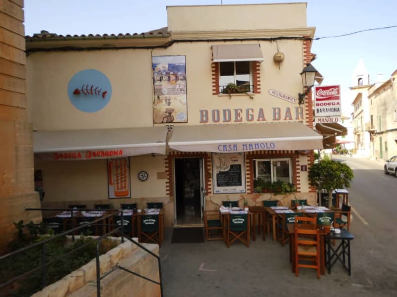 Die Bodega Bar von Juan Barahona, kurz Manolo genannt, findet man in Ses Salines, direkt neben der Kirche. Das im typisch Mallorquinischen Stil gehaltene Lokal hat zwei Ebenen und ca. 60 Sitzplätze. Auf der Speisekarte findet man neben Fischgerichte, mehr als zwanzig verschiedene Tapas: vegetarisch, fischig und fleischig. Außerdem gibt es die Caldereta de Langosta, eine Fischsuppe mit Langusten. Diese muß man allerdings 24 Stunden im Voraus bestellen. An den Wänden hängen hunderte Fotos von vielen prominenten Persönlichkeiten. An der Decke hängen viele Schinken zum trocknen. Der Wirt Manolo und seine Familie begrüßen und bedienen persönlich und wenn man satt und zufrieden das Restaurant verläßt, hat man das Gefühl ein alter Freund zu sein.