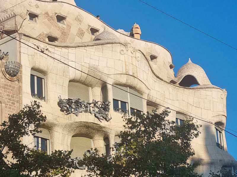 Die Familia Mila liesssich im Jahr 1906 dieses Haus von Antoni Gaudi bauen, es ist das letzte Gebäude welches er vor der Übernahme der Tätigkeit für die Sagrada Familia baute. Es ist unglaublich, welche Neuerungen er hier einbrachte. Das Haus wird durchlüftet, sodaß es auch im Sommer angenehm kühl in den Räumen ist. Es sind Aufzüge vorhanden die aber viel später erst eingebaut wurden. Das Problem für eine Besichtigung ist, daß man stundenlang warten muß, auch ist der Eintritt enorm hoch angesetzt.