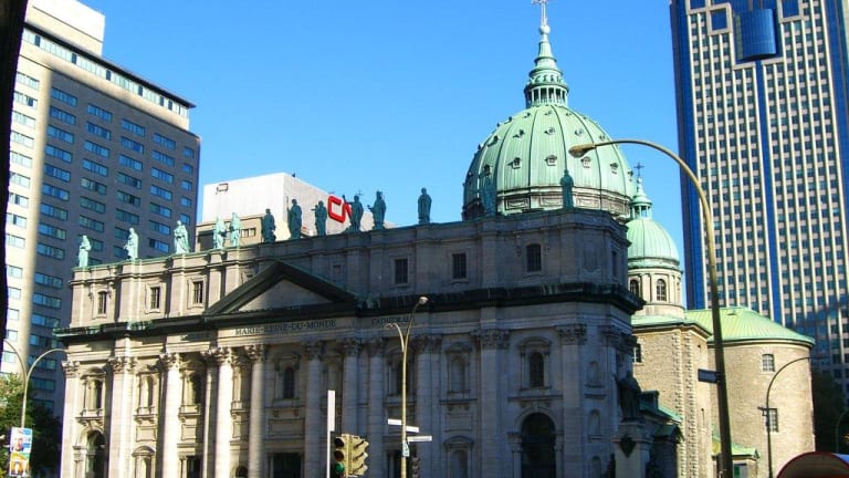 Die Bau der Kathedrale begann 1875 und sie wurde 1894 als Saint James Cathedral geweiht. Der damalige Bischof Ignace Bourget gab sie als Maßstab-treue Kopie des Petersdoms in Rom in Auftrag. 1955 erhielt sie von Papst Pius XII den heutigen Namen. Außen stehen anstelle der 12 Apostel (wie am Petersdom) die Schutzpatrone der 13 Montrealer Pfarreien. Innen sind die Ähnlichkeiten zum Vorbild in Rom nicht zu übersehen. Durch den kleineren Maßstab (1/3) macht sie aber nicht den gleichen imposanten Eindruck. Einen Besuch ist die Kathedrale aber sicher trotzdem wert.
