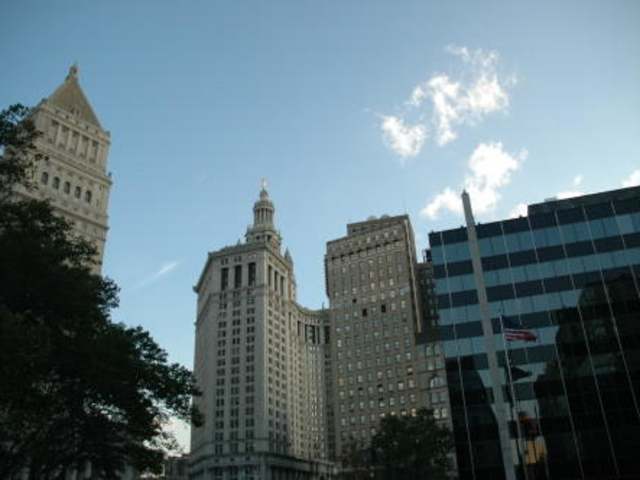 Im Südosten von TriBeCa (Triangle Below Canal Street) liegt Manhattans Civic Center. Zu finden ist es zwischen der Broklyn Bridge, dem Foley Square, dem Broadway und dem City Hall Park. Unser Weg führte uns als erstes zum **CITY HALL PARK** Hier war im 18. Jh. der „Common“, eine freie Rasenfläche, die allen gehörte und zum Weiden des Viehs, für Versammlungen und militärische Übungen genutzt wurde. Schon damals standen hier öffentliche Gebäude wie etwa das Armenhaus, der Pulverturm, das Gefängnis und auch der Galgen. Heute ist es ein schöner, wenngleich auch nicht unbedingt großer Park mit zahlreichen Blumen und Bäumen, der vor allem gehmüde Touristen zum Durchatmen einlädt. Vor allem der Ausblick auf das Rathaus der Stadt ist wunderbar. Gute Infos in Englisch samt Fotos bekommt ihr unter http://www.nycgovparks.org/parks/cityhallpark/ Wo heute der FOLEY SQUARE liegt, befand sich einst ein Teich, dieser wurde allerdings 1811 trockengelegt. Heute spielt sich hier das politische Leben ab. In der Mitte steht ein wunderschöner Brunnen, links und rechts ist der Weg mit zahlreichen Bänken gesäumt. Auf diese Bänke haben sich meine Kinde rund ich ausgeruht, während mein Mann auf Fotosafari ging, um die Schönheit der nächsten Sehenswürdigkeit einzufangen, der **CITY HALL** Das Rathaus der Stadt ist wohl eines der elegantesten Gebäude, die hier zu finden sind. Als die Stadt Anfang des 19. Jahrhaunderts nach Norden wuchs, zog das Rathaus mit. Der Bau an der Wall Street machte neuen Bauwerken Platz und ein Wettbewerb wurde ausgerufen. Gewonnen haben ihn Joseph F. Mangin und John McCom Jr., die damit nicht nur das Rathaus entwerfen durften, sondern auch noch 350 Dollar an Preisgeld mit nach Hause nehmen durften. Die Architekten brachten jeweils Elemente aus ihren Heimaten - Frankreich und Schottland - mit und so vereinbt die City Hall Anklänge der französischen Renaissance und des englischen Georgian Style. Nicht belegt ist, von wem die Idee stammt, bei der Ausgestaltung der Nordseite zu sparen. Die Frontpassage ist mit Marmor verkleidet und sie erstrahlte einfach in diesem eleganten Glanz. Kommt man zur Nordseite, musste der Marmor einfachem Backstein weichen. Angeblich soll der Bauherr damals gemeint haben, es werden wohl nur ein paar Dorftrottel im Norden wohnen, daher wäre es Geldverschwendung, hier soviel aufzuwenden. Gerechtigkeit erfuhr das Gebäude erst bei einer Restaurierung 1959, denn da wurde es in seiner Gesamtheit in Alabama Kalkstein gekleidet. Die ganze Pracht konnten wir allerdings nicht sehen. Vom City Hall Park war das Rathaus zwar zu sehen und die Schönheit auch zu erahnen, aber leider war es von hohen Bäumen halb verdeckt und auch Fotos konnten nur durch einen Zaun geschossen werden. Außerdem war die rechte Seite ziemlich verhüllt, weil offensichtlich eine Renovierung von statten ging. Will man das Rathaus besuchen, so muss man sich vorher eine Reservierung holen. Vorher, das ist mindestens einen Monat im Voraus und das geht am besten unter www.nyc.gov oder telefonisch unter 212/7882656, die Vorwahl für die Staaten nicht vergessen! Wir hatten diese Reservierung nicht und daher mussten wir uns den vielen Zaungästen anschließen. Den besten Blick auf das Rathaus konnten wir von der westlichen Seite her werfen. Überall ist zwar Security abgestellt, aber die sind total freundlich und haben auch mal ein Lächeln für die Kinder, die sich über eine Eichhörnchengruppe im Garten des Rathauses köstlich amüsiert haben, übrig. Wir gingen dann weiter in Richtung Norden und kamen zu einem viktorianischen Bau, dem **OLD NEW YORK COUNTRY COURTHOUSE** das von vielen auch Tweed Courthaus genannt wird. Hier gilt das gleiche wie beim Rathaus: bitte reservieren, wenn man das Innere sehen will. Dieses Gebäude wurde 1861 bis 1881 nach Planen von John Kellum und Leopold Eidlitz gebaut. Benannt ist es nach dem korrupten Politiker William M. Tweed, der bei dem Bau fast zwischen 10 und 15 Millionen Dollar öffentlicher Gelder in seine eigene Tasche fließen ließ. Heute wird das Courthouse, das in der 31 Chambers Street liegt, vor allem von Touristen besucht. Gleich daneben befindet sich ein prächtiger Beaux Arts-Bau, der 1899-1911 von John R. Thomas und Horgan & Slattery entworfen wurde, der **SURROGATE’S COURT** oder Hall of Records. Hier dominieren acht korintische Säulen die Fassade und mir haben - wie fast überall - die Skulpturen und Statuen am besten gefallen. Die haben irgendwie eine dramatische Atmosphäre erschaffen, das fand ich gut. Ob das Absicht war, kann ich nicht sagen, aber auf mich hatten sie eben diese Wirkung. Es ist das Nachlassgericht und laut unserem Reiseführer haben wir wohl das schönste gesehen - die Fassade, die der Pariser Oper gleicht. Der Innenraum soll eher spatanisch sein, neben dem Nachlassgericht befindet sich hier auch das Stadtarchiv. Ehrlich gesagt haben wir uns hier nur kurz aufgehalten und sind gleich weiter gegangen zum **MUNICIPAL BUILDING** 1914 wurde das Municipal Building, Sitz der Stadtverwaltung, von der New Yorker Architektenfirma McKim, Mead & White erbaut. Das Hochhaus erhebt sich 177 m hoch direkt über die U-Bahn-Station Brooklyn Bridge. Ich finde, dass dieses mächtige Gebäude einen wunderschönen Kontrastpunkt zur City Hall bildet. Es erdrückt sie nicht, wie man vielleicht vermuten mag, sondern passt sich irgendwie der Atmosphäre dort an, ich fand es wunderschön. In den Jahren 1913-27 entstand das sechseckige Gebäude des New York **COUNTRY COURTHOUSE** der Sitz des Bezirksgerichtes. Dieser wuchtige Säuleneingang ist mir vor allem aufgefallen. Das Courthouse ist das Markenzeichen der Architekten Guy Lowell, der als Sieger in einem Wettbewerb 1912 hervorging. Ich persönlich konnte diesem Gebäude nicht so viel abgewinnen. Klar, die Fassade ist auffällig, aber dadurch wirkt sie komischerweise auch ein bisschen deplaziert. Mir fehlt es an der Eleganz, die die anderen Gebäude im Civic Center ausstrahl