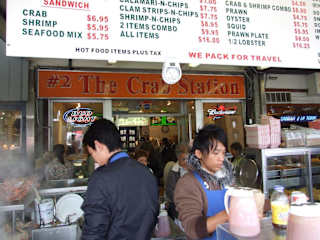 Eine Art Kartoffelsuppe mit Fischstückchen, die in einem riesigen Sauerteigbrötchen serviert wird. Wirklich sehr lecker! Lagebeschreibung: Bekommt man hauptsächlich in der Gegend um Fishermans Wharf