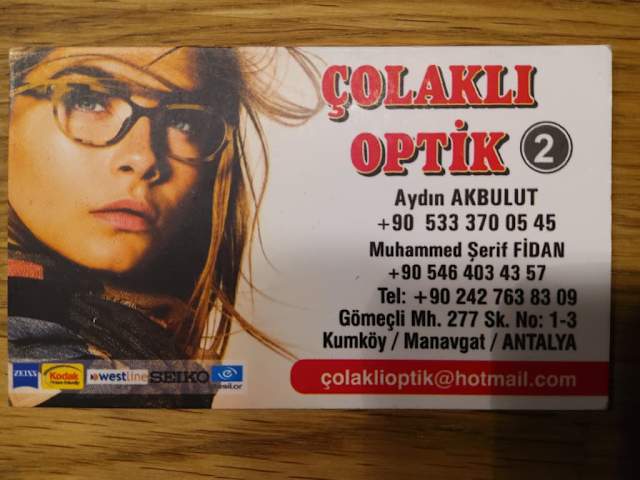 Wir sind noch immer im Urlaub in colakli. Mein Mann hat sich bei Aydin eine Brille anfertigen lassen. Er ist vom Service und der Brille und der Preis-Leistung total begeistert! Jeder der eine neue Brille braucht ist bei Aydin Akbulut Colakli Optik 1 bestens beraten! Im nächsten Jahr werde ich meine Brille dort bestellen! Beratung und Service bekommen ganz viele Sterne von uns!