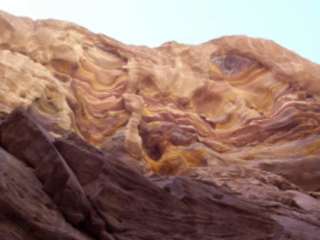 Den Ausflug in den Coloured Canyon haben wir bei unserer Reiseleitung im Hotel Sea Magic, für 49€ gebucht. Sicher gibt es diesen Ausflug auch preiswerter, aber dafür waren wir nur 4 Personen, die im Jeep genügend Platz hatten und einen Reiseleiter, der perfekt Deutsch sprach. Etwa 2 Stunden ging es über die gut ausgebauten Straßen bis zum Eingang des Canyons, wo normalerweise ein Führer zusteigt. Wir brauchten den nicht, da unser Reiseleiter vielleicht einen heißen Draht hatte. Die Fahrt über die Schotterpiste zum Ausgangspunkt der Wanderung war schon irre. Auf die Frage, weshalb er mit teilweise 70Km/h die Wege entlang gerast ist, sagte der Reiseleiter, dass wir Spaß haben sollten... na ja, für mich sieht Spaß anders aus, aber wir haben es überlebt und standen nach 25 Minuten am Ausgangspunkt unserer Wanderung. Schnell noch was Kühles getrunken und dann ging es bei über 30 Grad hinab in das Tal, perfekt ausgerüstet mit 4 Liter Wasser für 2 Personen und etwas Verpflegung. Unser Reiseleiter hat nur gelächelt, nahm selbst nur einen halben Liter mit. Nach einigen Beschreibungen hier, dachten wir echt, dass man mit einigen Schwierigkeiten rechnen muss. Ich kann das nicht bestätigen!!! Die Wanderung durch den Canyon ist selbst für Unsportliche und auch für etwas dickere Menschen ohne große Anstrengungen zu bewältigen und dauerte bei uns 90 Minuten. Turnschuhe und Kopfbedeckung sind Pflicht. Der Weg durch den Canyon ist mal breit und dann wird es auch recht eng. Immer wieder sieht man beeindruckende Felsformantionen und bizarre Muster im Fels. Mit etwas Phantasie erkennt man "Teufel", "Löwenkopf" und andere Formen. Das vielbeschriebene und sooooooooooooo schwierig dargestellte Loch ist nicht wirklich ein Problem. Eine Person unserer Gruppe war etwas korpulenter und sie kam ganz locker durch. Am Ende der Schlucht erwartet die Wanderer ein breites Tal und von dort sind es dann noch einige 100m aus der Schlucht hinaus. Der Höhenunterschied ist kaum der Rede wert. Entweder man nimmt den etwas kürzeren, aber steilen Weg, auch der ist harmlos, oder den leichtansteigenden Weg, der auch für total unsportliche in wenigen Miuten zu bewältigen ist. Oben angekommen wartet bereits der Jeep, man kann Getränke kaufen, oder die restlichen Liter Wasser in den Bauch kippen, die übrig geblieben sind. Auf der Rückfahrt in das Hotel gab es noch einen kurzen Einkaufsbummel in Dahab und einen erfrischenden Badestopp an der Blauen Lagune, einem tollen Surferevier. Ein sehr schöner Tag mit einem Ausflug, den ich nur jedem empfehlen kann.