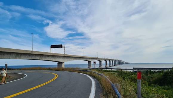 Die im Juni 1997 eröffnete "Confederation Bridge" -ein Teilstück des Trans-Canada-Highway- verbindet Cape Jourimain/New Brunswick über die engste Stelle der Northumberlandstraße mit Borden-Carleton/Prince Edward Island. Sie ist elf Meter breit und hat zwei Fahrspuren; überholen ist deshalb nicht erlaubt. Mit einer Länge von etwa 12,9 Kilometern ist es derzeit die längste Brücke der Welt über eisbedecktes Wasser. In Anbetracht der in dem Gebiet herrschenden widrigen klimatischen Bedingungen wurden die meisten Brückenbauteile an Land vorgefertigt, zum Baugelände transportiert und dann an Ort und Stelle montiert. Die elf Kilometer lange Hauptbrücke ruht auf 44 Pfeilern. Homepage: http://www.confederationbridge.com/