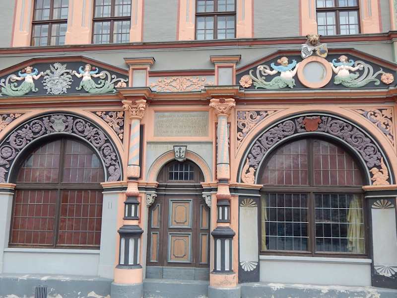 Das gesamte Anwesen in dem sich das Cranachhaus nbefindet, ist ein Renaissance Doppelhaus und in der linken Hälfte wohnte Lucas Cranach und sein nicht weniger berühmte Sohn. Das Haus stammt aus dem Jahre 1549 und Cranach zog 1552 in das Haus. Zu diesem Zeitpunkt war der Maler schon 80 Jahre alt und hier begann er das berühmte dreoflüglige Altargemaälde, dass in der Herderkirche hängt. Er selbst konnte die nicht mehr beenden, sondern sein Sohn 1555. Das HAus kann momentan nicht besichtigt werden.