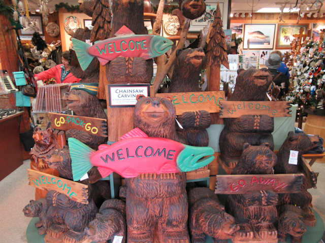 Nicht weit von der Anlegestelle der Kreuzfahrtschiffe findet Ihr die Creek Street, eine Strasse, besser eine Strasse nur für Fußgänger auf Holzstelzen. Es ist die Touristenatraktion in Ketchikan und dementsprechend voll. In den Häusern sind viele Geschäfte mit den üblichen Touristen Souveniers, dann gibt es noch das Dolly House, ein ehemaliges Bordell, wo die Goldsucher Ihr verdientes Geld wieder ausgaben, mit 10 US Dollar ist man drin, da das Haus aber sehr klein ist , haben wir uns dieses Geld gespart. Es gibt am Ende der Straße noch einen Schrägaufzug, leider war der außer Betrieb.
