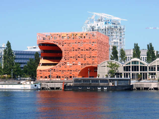 Der orangefarbene Würfel ist ein Bürogebäude am Ufer der Saône, dessen löchrige Würfelform ihm den Spitznamen "La Mimolette" nach dem ähnlich gefärbten Käse einbrachte. Das Gebäude ist die Umsetzung des Entwurfs, der als Sieger aus einem Wettbewerb hervorging, der zum Ziel hatte, das Industriegebiet im Stadtteil La Confluence attraktiver zu gestalten. Zumindest wird durch den Bau Aufmerksamkeit erregt.