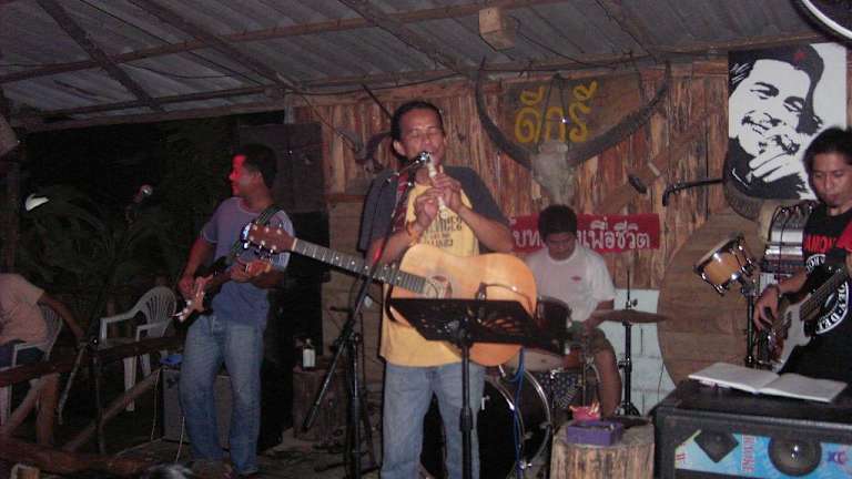Hier muß jeder Khaolak-besucher mindestens einmal gewesen sein. Mir, einem eingefleischten Altrocker, wurde es heiß ums Herz, als ich mit meiner Lebensgefährtin das erste Mal die Degree-Bar besuchte. Überwiegend einheimisches Publikum, dazwischen aber auch Gäste aus aller Welt, umrahmten den fetzigen Sound, der von NUM, Inhaber der Degree-Bar, und seiner fünfköpfigen Band, allabendlich dargeboten wird. Kühle Getränke, Bier vom Faß und sehr Spicy-einheimische Gerichte zu kleinen Preisen, ließen uns den Besuch zu einem unvergesslichen Erlebnis werden.