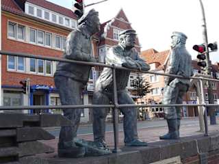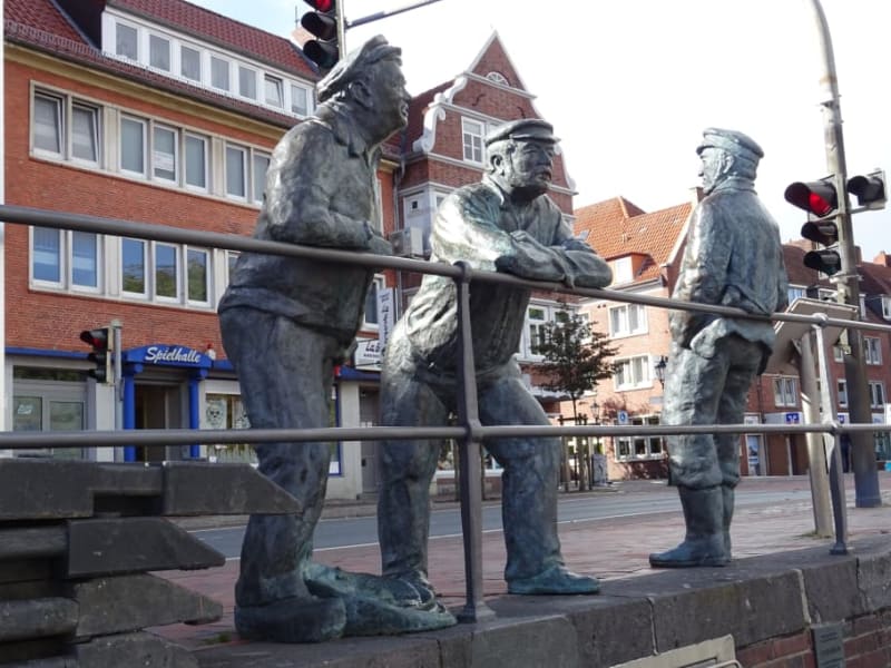 Direkt am Hafen lehnen sich die Männer an das Eisengeländer und kauen ihren Kautabak - sehr schöne Skulptur mit Erklärtafel daneben. Sehr schönes Fotomotiv, bei dem man aber etwas aufpassen muss. Wer unten direkt am Wasser steht und die Figuren fotografieren möchte, könnte feststellen, dass diese noch eine kleine Überraschung parat haben.