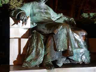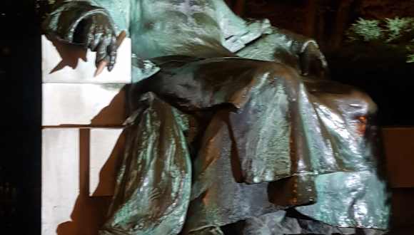 Jeder Besucher von Budapest muss ihn besucht haben. Es war verhältnismäßig leer, Aber ich musste 3 ungarische Familien mit dem unbekannten Hofschreiber fotografieren. Außerdem musste der Schreibgriffel angefasst werden, es bringt Glück. Von den vielen Berührungen glänz er golden. Die Plastik stellt den Chronisten von König Béla da, der als Begründer der Ungarischen Geschichtsschreibung gilt. Man konnte sich aber nicht einigen wer es war, zog man ihm die Kapuze soweit über das Gesicht, das es nicht zu erkennen ist. Den Anoymus findet man im Stadtwäldchen in der Burg Vajdahunyad gegenüber dem Landwirtschaftsmuseum.