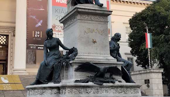In dem kleinen Park vor dem Nationalmuseum steht ein Denkmal für den Dichter János Arany. Arany ist eine der bedeutendsten Figuren der ungarischen Literatur, er war im 19. Jahrhundert Mitglied und Generalsekretär der Ungarischen Akademie der Wissenschaften. Bekannt wurde er vor allem durch sein Werk „Toldi“, für das er einen Preis erhielt.