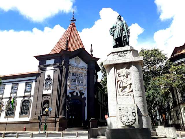Seit 1940 steht vor dem Portal der „Banco de Portugal“ nahe der Avenida Arriaga auf einem Granitsockel die beeindruckende Bronze-Statue des Entdeckers von Madeira: Es handelt sich um den portugiesischen Kapitän João Gonçalves Zarco. Im Auftrag Heinrich des Seefahrers war er zunächst 1418 mit seinem Schiff bei Sturm auf Porto Santo gelandet um ein Jahr später, zusammen mit zwei weiteren Kapitänen, auch Madeira anzusteuern. In der Tat gilt Zarco allerdings nicht wirklich als der Entdecker des Archipels, denn dieses war schon in älteren Seekarten eingezeichnet, aber zur Zeit seiner Landung präsentierten sich sowohl Madeira als auch Porto Santo unbewohnt und gingen daher ohne Kampfhandlungen in den Besitz der portugiesischen Krone über. João Gonçalves Zarco, dem von „Heinrich dem Seefahrer“ der Südteil Madeiras samt Funchal als eine Art Lehen übertragen worden war, starb um 1467 auf der Insel.