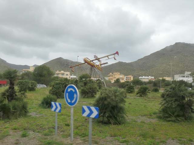 Was bei einer Fahrt über Mallorca sicherlich allen auffallen wird, das sind die „Kunstwerke“, die sich auf vielen Kreisverkehrsinseln befinden. Wenn man bei Port de Pollença der Straße MA-2200 (Carrer Ramón Valenilla) entlang fährt, so sieht man in dem Kreisverkehr, an dem die MA-2220 (Ctra. Palma a Puerto Pollença) auf die MA-2200 trifft, ein gelbes Wasserflugzeug mitten auf dem Kreisverkehr. Bei dieser Darstellung eines Wasserflugzeuges handelt es sich um ein Löschflugzeug. Es ist ein Denkmal für die Piloten und für die Wasserflugzeuge / Löschflugzeuge, die am Aeródromo Militar de Pollença stationiert sind und die in erster Linie für die Überwachung und Bekämpfung von Waldbränden, sowie zur Unterstützung von Suchaktionen und Rettungsdiensten eingesetzt werden.