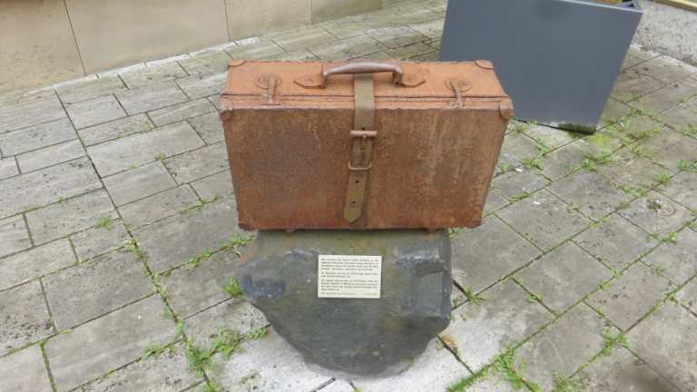 Zwischen Marktplatz und Rügshöfer Straße steht in der Marktstraße die Nachbildung eines Koffers. Dieser Koffer erinnert an die Deportation der jüdischen Bevölkerung aus Gerolzhofen und Umgebung, welche zwischen 1941 und 1944 in die Konzentrationslager und Vernichtungslager verschleppt wurden. Diese Deportationen erfolgten über den Bahnhof von Würzburg. Auch in vielen anderen Orten in Unterfranken stehen unterschiedliche Gepäckstücke, die an diese schrecklichen Vorgänge erinnern. All diese Gepäckstücke in den unterfränkischen Orten sind Teil des Zentraldenkmals „DenkOrt Deportationen 1941-1944“ in Würzburg. Die Gepäckstücke in Würzburg sind alle mit Ortsbezeichnungen versehen – und in den meisten dieser Orte findet man die jeweiligen Gegenstücke, so auch hier in Gerolzhofen. Wenn Sie in Gerolzhofen sind, so sollten Sie nach Möglichkeit auch einmal zu diesem Denkmal DenkOrt Deportation 1941-1944 in der Marktstraße gehen und all den NAZI-Opfern gedenken.