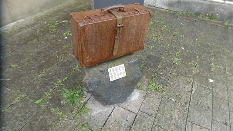 Von dem zentralen Denkmal „DenkOrt Deportationen 1941-1944“ vor dem Würzburger Hauptbahnhof gibt es diverse dezentrale Ableger. So steht in Gerolzhofen in der Marktstraße die Nachbildung eines Koffers als Gegenstück des Koffers aus dem zentralen Denkmal in Würzburg. Auch der Koffer in Gerolzhofen steht zum Gedenken an die jüdischen Mitbürger_innen, welche zwischen 1941 und 1944 durch Deportationen in die Konzentrationslager und Vernichtungslager der NAZIs verschleppt und ermordet wurden.