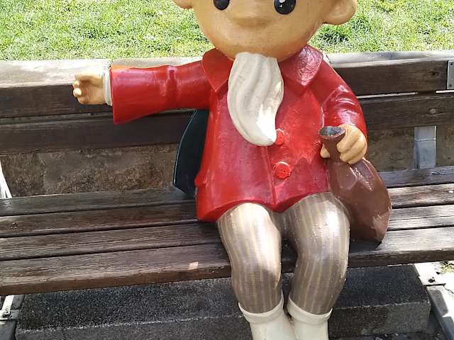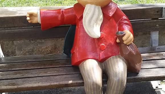 Im Laufe der Jahrzehnte hat das „DDR-Sandmännchen“ Millionen von Kindern in das Bett geschickt. In Erfurt findet man das Sandmännchen in einem kleinen Park in der Kreuzgasse auf einer Bank und man kann sich hier auch zum Sandmännchen setzen (davon machen nicht nur Kinder Gebrauch, sondern auch viele Erwachsene jedem Alter). Natürlich haben auch wir uns neben den Mann (mit seinem rotem Umhang, mit roter Mütze, mit seinem weißen Spitzbart und dem Beutel mit Schlafsand in der Hand) gesetzt.