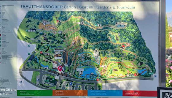 Unser Ausflug in die Gärten von Schloss Trautmannsdorff haben einen bitteren Nachgeschmack hinterlassen. Unser Besuch am 2.10.23 endete mit einem Sturz im Irrgarten!!Der ebene Weg hatte an einer Stelle eine schlecht sichtbare rechteckige, ca. 10x20cm große hellgraue Vertiefung in der weißen Begrenzungslinie!! Genau dahinein ist mein Mann getreten und hat sich beim Sturz den Oberarmknochen und die Gelenkkapsel gebrochen!! Ich habe versucht jemanden im Verwaltungsbüro zu erreichen. Da die Klingel defekt war klopfte ich mehrfach laut, doch es wurde nicht geöffnet. Darauf versuchte ich mein "Glück" bei den Kassen. Die beiden Damen dort sagten, dass es keinen Beweis gäbe, dass mein Mann im Park gewesen sein, da wir kein Foto vom Sturz gemacht hätten. Eine Unverschämtheit keinen Weisungsberechtigten zu befragen!! Nachdem wir im Krankenhaus Bozen ( = in der Nähe unseres Urlaubsortes ) die Bestätigung des Bruchs durch Röntgenbilder erhalten hatten, gab es nur noch die Option der Operation in der Heimatregion. Glücklicherweise war es Dank ADAC möglich meinen Mann am 4.10. mit einem Rettungswagen und mich mit unserem Auto nach Hause zu bringen. Fazit : Man besucht die Gärten besser nicht!