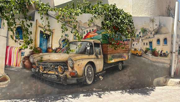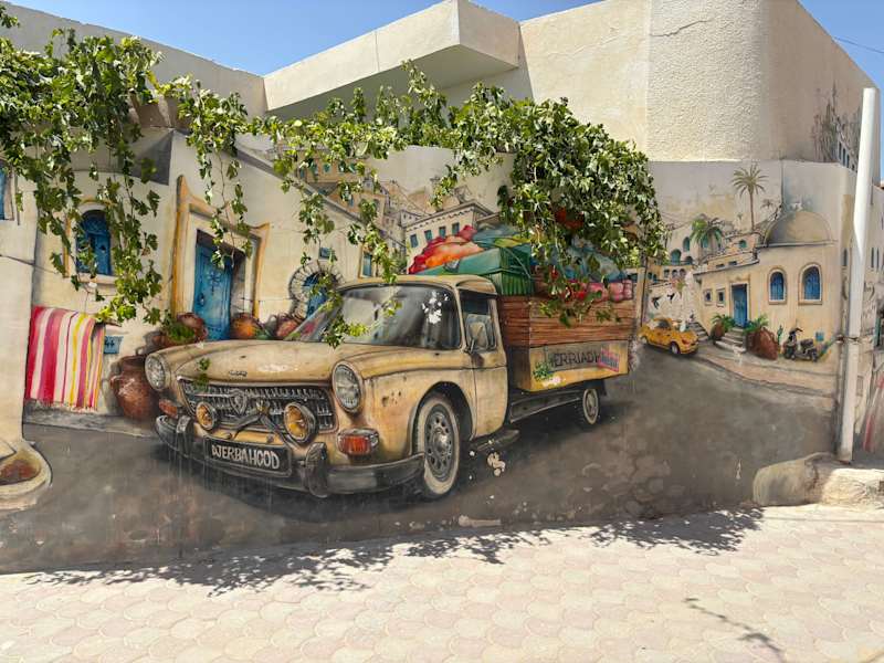 Wie alles auf Djerba gut mit dem Taxi erreichbar. Nette Street-Art, die auch aktualisiert wird.