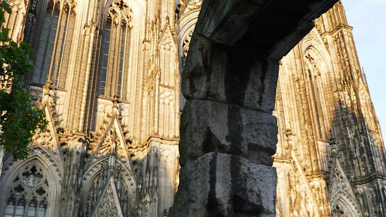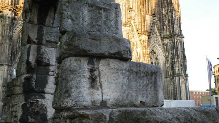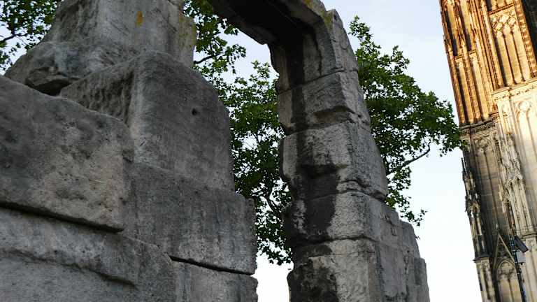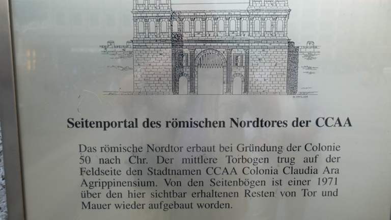 An der Domplatte in Köln kann man vor dem Eingang zum Dom noch einen Steinbogen sehen. Dieser Rest des Nordtores steht somit sehr prominent dort. Die Inschrift mit CCAA bedeutet ; Colonia; Claudia; Ara;Agrippinensium. Damit haben auch die Kurzbesucher ein Denkmal für die römische Zeit, die im Jahr 50 nach Christus zu veranschlagen ist. Auch in Trier gibt es solche römischen Reste, aber am Niederrhein nahe der Stadt Xanten sind solche römischen Reste zu finden.